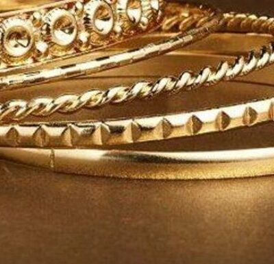 ​Σετ 5 γυναικεία βραχιόλια κατασκευασμένα από ατσάλι με επιμετάλλωση κίτρινο χρυσού.