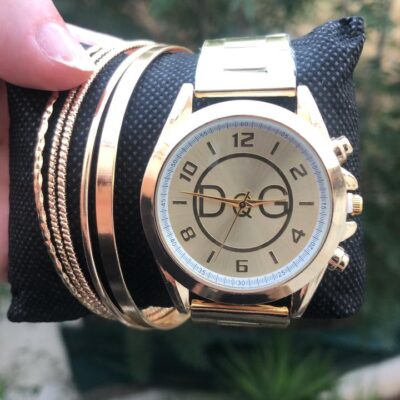 Γυναικείο σετ ρολόι & 5 βραχιόλια σε χρώμα gold