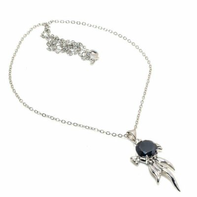 Χειροποίητο ασημένιο 925 μενταγιόν με φυσικό μαύρο σπινέλιο (spinel)