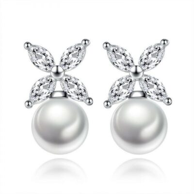Ασημένια 925 σκουλαρίκια με πέρλα 8mm και αυστραλιανά κρύσταλλα