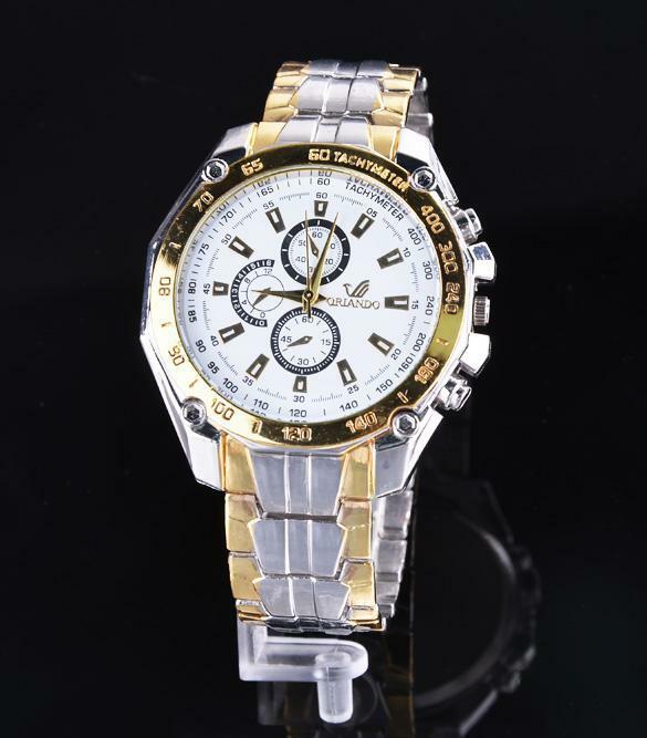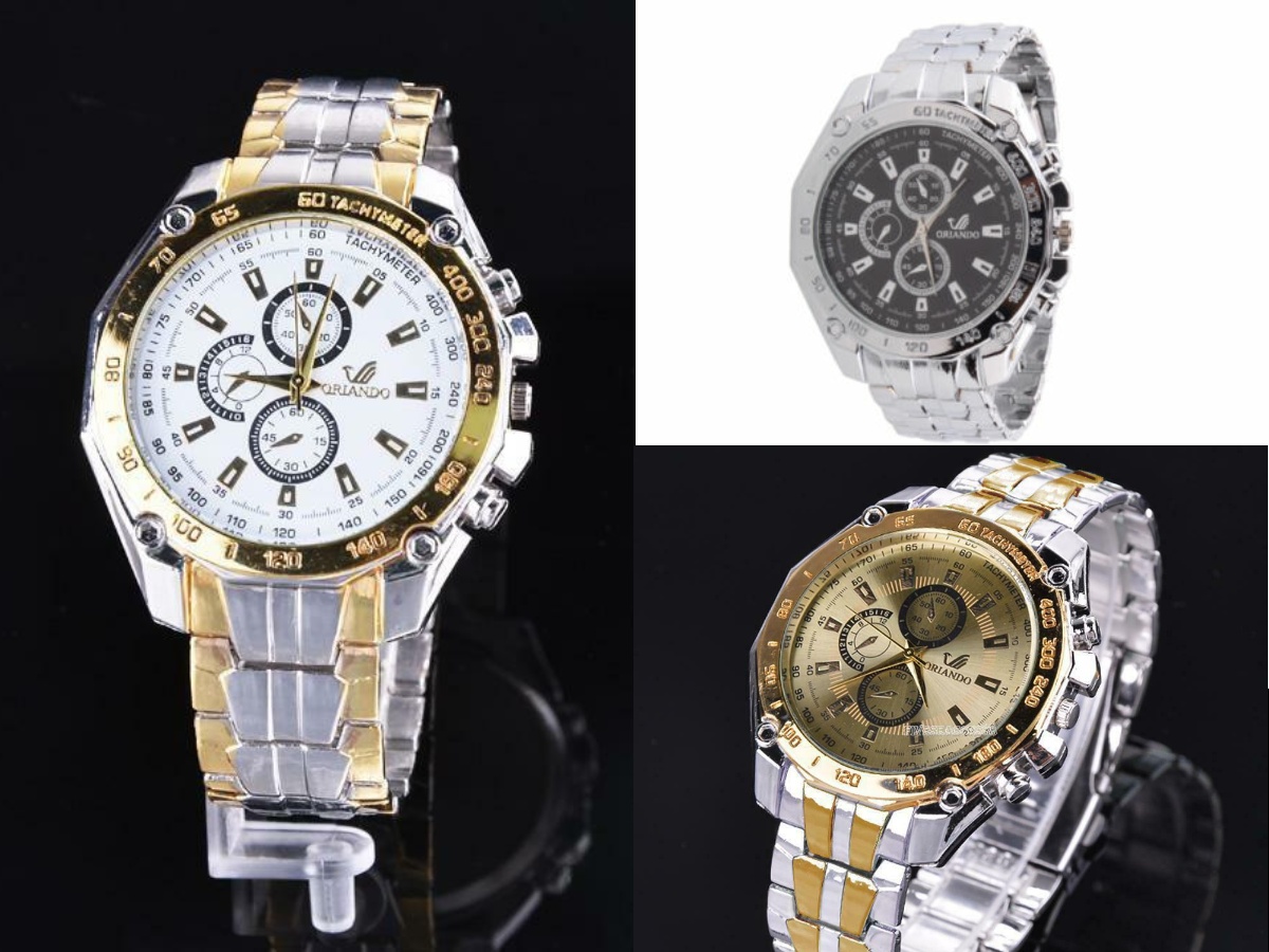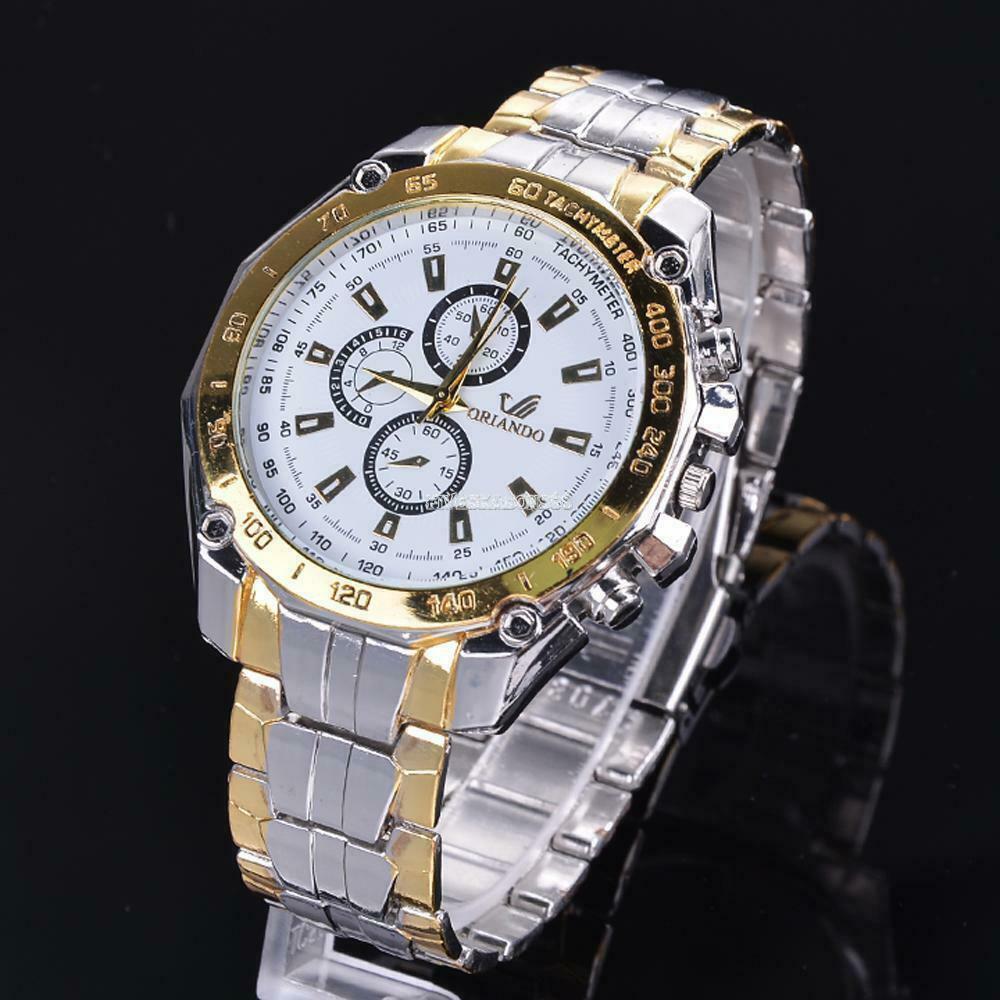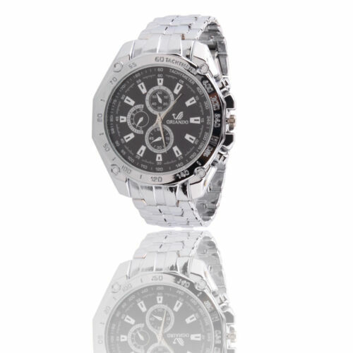 Αναλογικό ανδρικό ρολόι ORLANDO, πολυτελείας, ανοξείδωτο ατσάλι το καντράν και το μπρασελέ του. Διάμετρος 4,4 εκ. Αδιάβροχο (πλύσιμο χεριών).