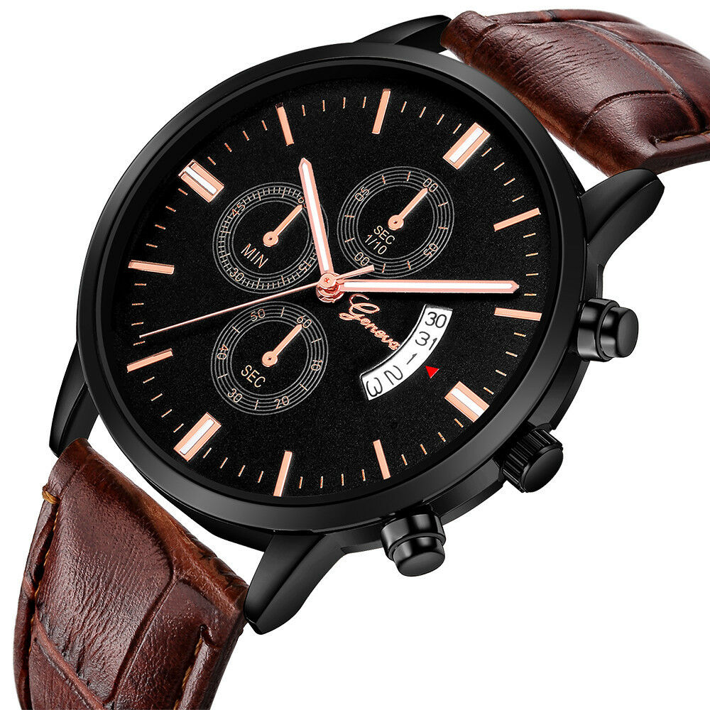 Ανδρικό, αναλογικό ρολόι GENEVA με δερμάτινο λουράκι