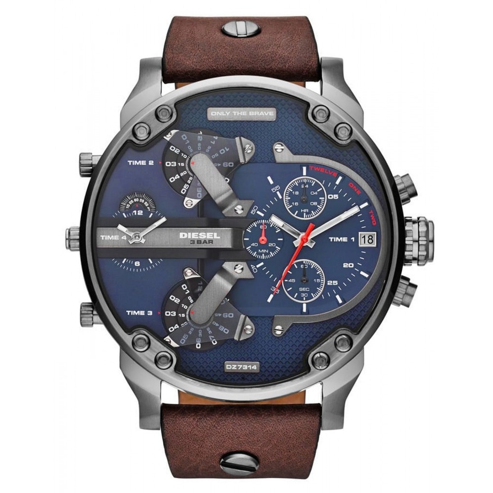 Ανδρικό, μοντέρνο και πρωτότυπο αναλογικό ρολόι τύπου DIESEL με κάσα από ανοξείδωτο ατσάλι! Δερμάτινο καφέ λουράκι μήκους 27,5 εκατοστών και με διάμετρο καντράν 5,2 εκατοστά.
