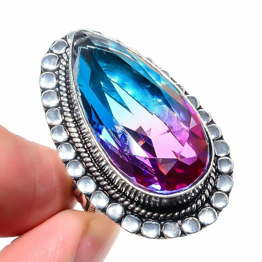 Δαχτυλίδι χειροποίητο, ινδικό.Kατασκευασμένο από μασίφ ασήμι 925 και διακοσμημένο εκτυφλωτική multicolor τουρμαλίνη (Lab creation) σε κοπή pear.Total Carat Weight: 50Ct.