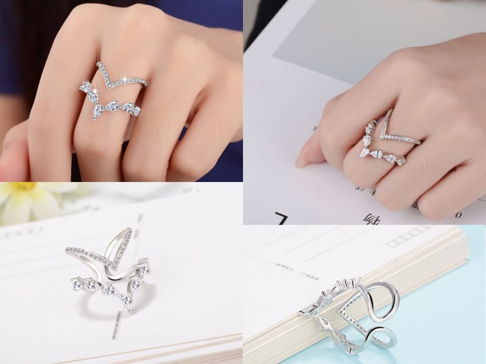 Υπέροχο δαχτυλίδι διπλό σειρέ με λευκές πέτρες ζιργκόν. Λαμπερό κόσμημα για ξεχωριστές εμφανίσεις! Κατασκευασμένο από ασήμι 925, διακοσμημένο με λευκά ζιργκόν σε κοπή pear και round.