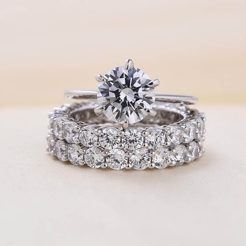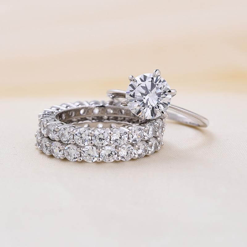 Ασημένιο 925 ΣΕΤ 3 δαχτυλιδιών που αποτελείται από 2 βέρες, με λευκά ζαφείρια (lab-created) σε κοπή round.Μονόπετρο δαχτυλίδι διακοσμημένο με λευκό ζαφείρι (lab-created) σε κοπή round brilliant και μικρότερα λευκά ζαφείρια σε κοπή round.Total Carat Weight:2.00 – 4.99 .Βάρος 5.4grams