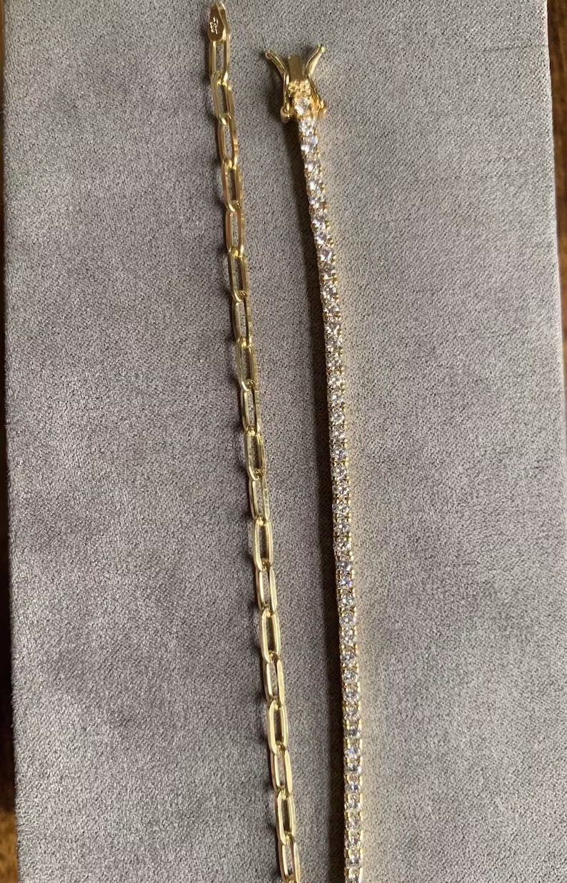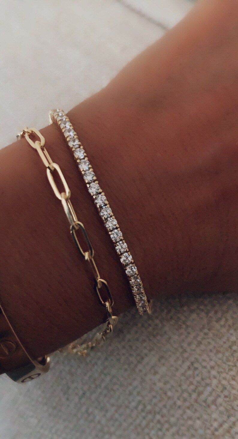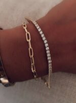 SET 2 μοντέρνα βραχιόλια, αλυσίδα μαζί με Ριβιέρα διακοσμημένη με λευκά ζιργκόν σε κοπή round.  Kατασκευασμένα ανοξείδωτα ατσάλι  (stainless steel) με επιμετάλλωση κίτρινου χρυσού. Το βραχιόλια αποτελούσαν ανέκαθεν τα πιο ευκολοφόρετα και ταυτόχρονα όμορφα αξεσουάρ τα οποίο μπορεί με πολύ απλό τρόπο να απογειώσουν στυλιστικά το look σου, προσδίδοντας του “χαρακτήρα” και προσθέτοντας τη λεπτομέρεια που θα σε κάνει να ξεχωρίσεις!
