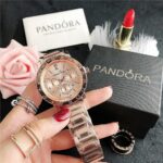 Γυναικείο ρολόι πολυτελείας PANDORA, αναλογικό, πολύ μοντέρνο, σε rose – gold χρώμα σε μπρασελέ και καντράν από ανοξείδωτο ατσάλι υψηλής αντοχής και ποιότητας για καθημερινή χρήση και με ενισχυμένο αντιθαμβωτικό τζάμι στο καντράν του! Αντιαλλεργικό, σύμφωνα με τις απαιτήσεις της Ευρωπαϊκής Ένωσης! Διαθέτει και ημερομηνία!