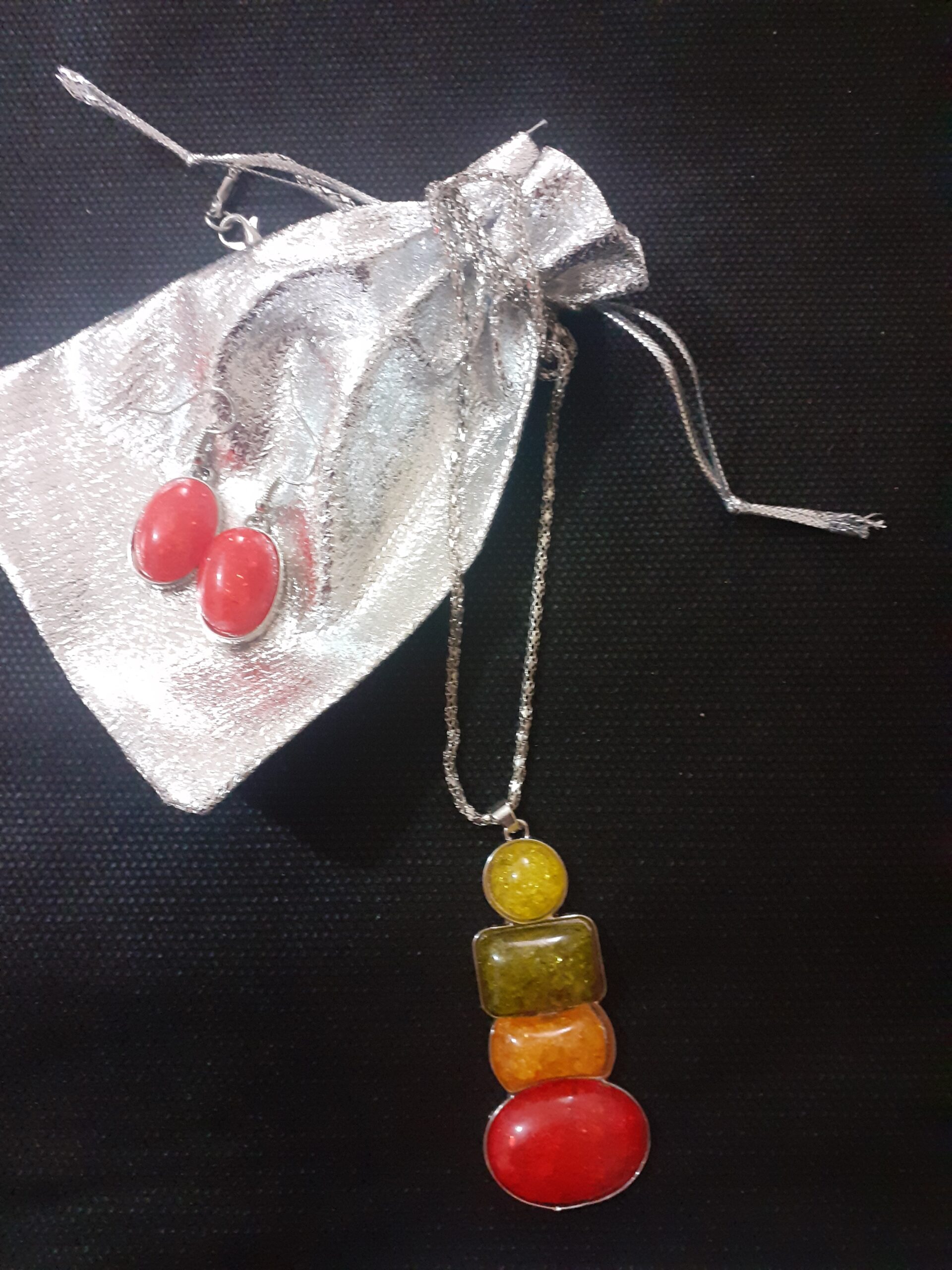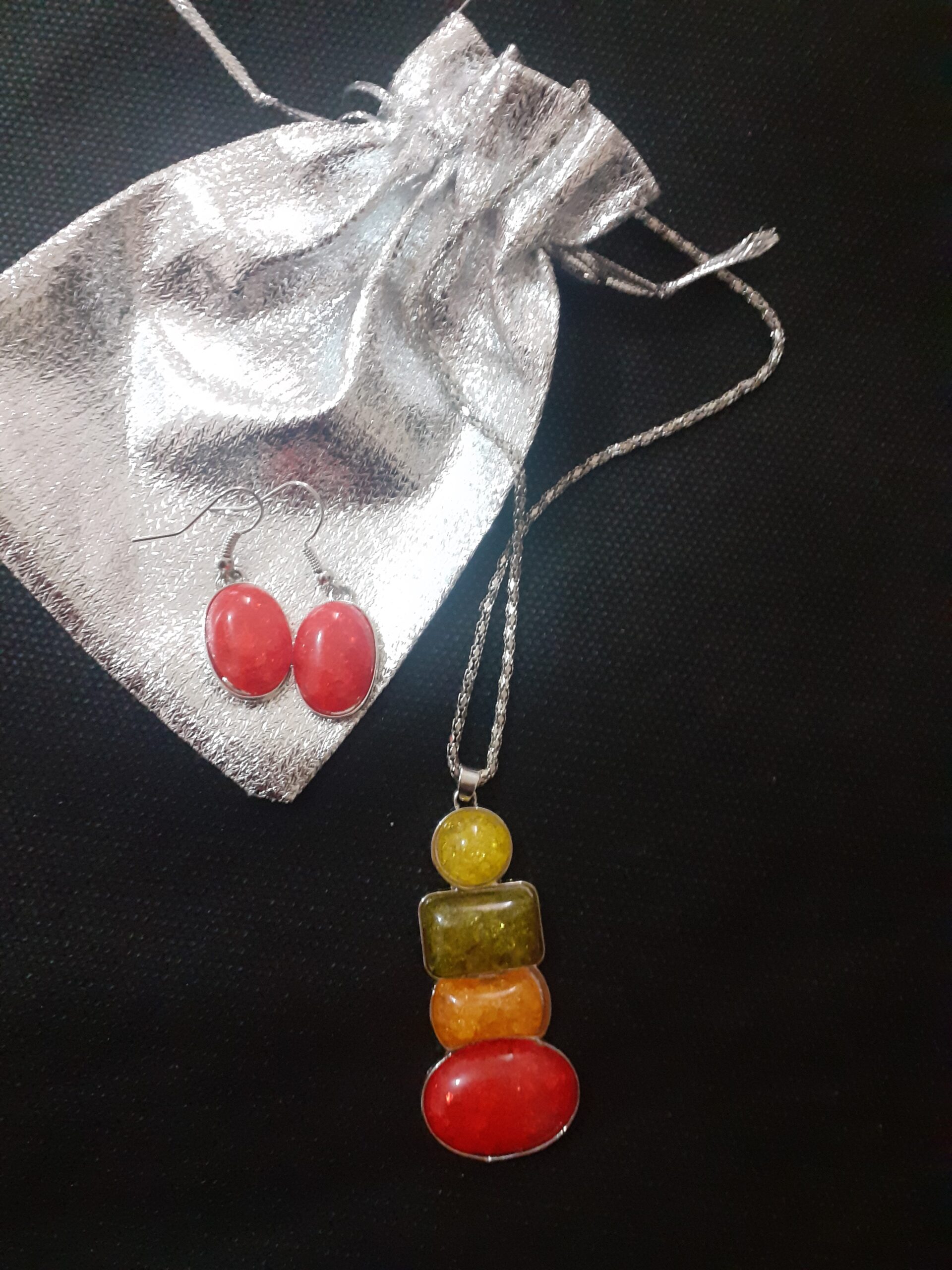 Γυναικείο σετ κοσμημάτων που αποτελείται από σκουλαρίκια και μενταγιόν που συνοδεύεται από την αλυσίδα του.