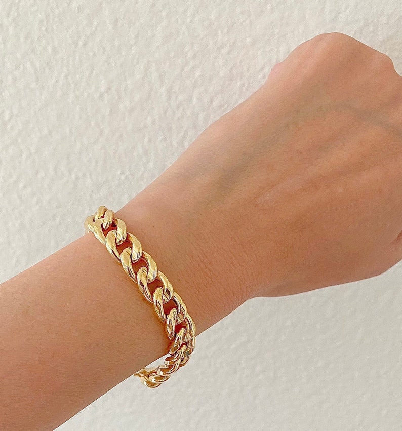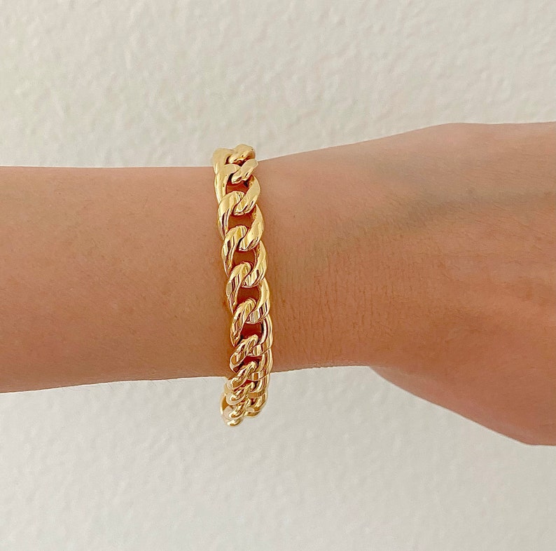 Κλασική μα πάντα διαχρονική η αλυσίδα χεριού (5mm) που σας προτείνουμε ανεπιφύλακτα. Επιμετάλλωση κίτρινου χρυσού 14 καράτια. Διαθέτει κούμπωμα ασφαλείας. Μήκος 22 εκατοστά. Ένα απαραίτητο κομμάτι για κάθε κοσμηματοθήκη.