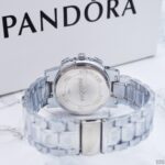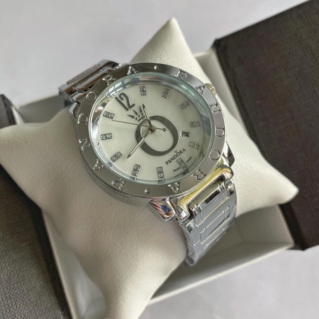 Γυναικείο ρολόι πολυτελείας PANDORA, αναλογικό, πολύ μοντέρνο, σε silver χρώμα σε μπρασελέ και καντράν από ανοξείδωτο ατσάλι υψηλής αντοχής και ποιότητας για καθημερινή χρήση και με ενισχυμένο αντιθαμβωτικό τζάμι στο καντράν του! Αντιαλλεργικό, σύμφωνα με τις απαιτήσεις της Ευρωπαϊκής Ένωσης! Διακοσμημένο εσωτερικά με λευκά αυστραλιανά κρύσταλλα!