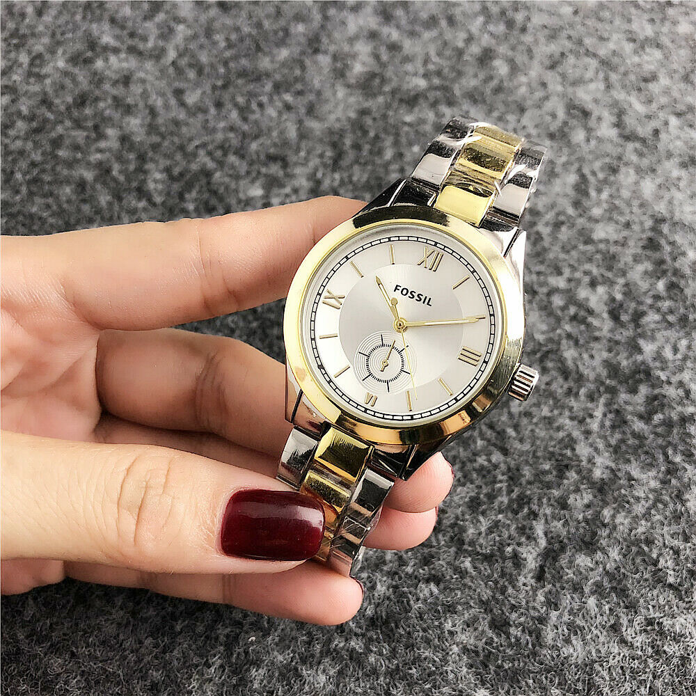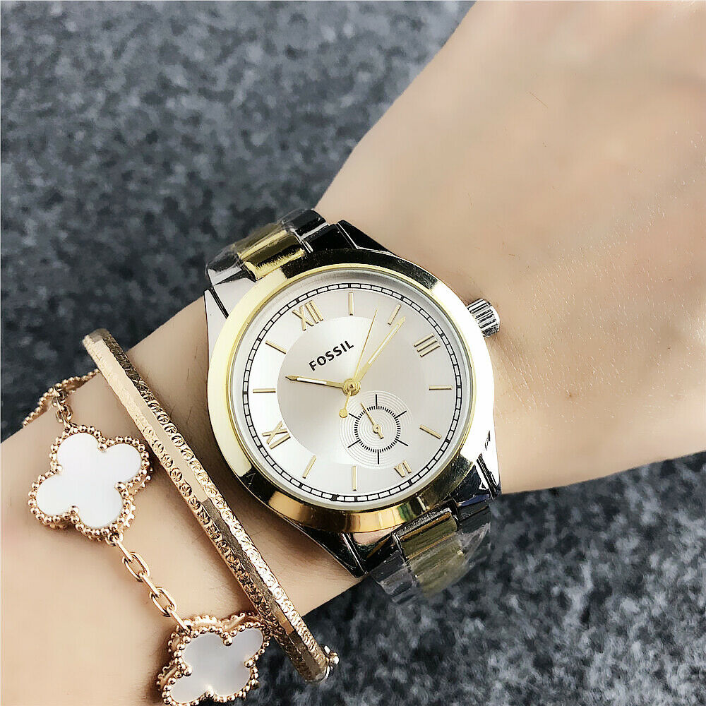 Γυναικείο ρολόι πολυτελείας FOSSIL, αναλογικό, πολύ μοντέρνο, σε silver – gold χρώμα. Υψηλής αντοχής και ποιότητας για καθημερινή χρήση! Το κρύσταλλο του είναι από ορυκτό γυαλί που καλύπτεται από συνθετικό ζαφείρι (Sapphlex)!