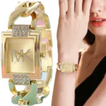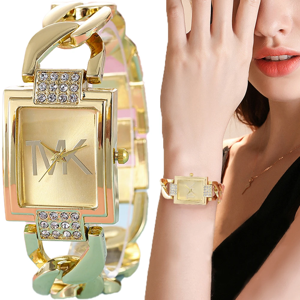 Γυναικείο ρολόι για εκλεπτυσμένες κυρίες! Ιδιαίτερο design σε gold απόχρωση. Κατασκευασμένο από ατσάλι με επιμετάλλωση κίτρινου χρυσού. Διακοσμημένο με λευκά ζιργκόν σε κοπή round, υψηλής ποιότητας και λάμψης, στη στεφάνη του.