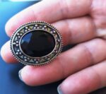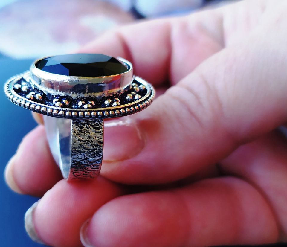 Δαχτυλίδι χειροποίητο κατασκευασμένο από ασήμι 925 διακοσμημένο με έναν ακαταμάχητης ομορφιάς ορυκτό πολύτιμο Μαύρο Όνυχα – Black Onyx σε κοπή Pear.