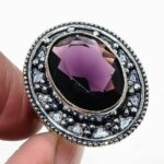 Για τις κυρίες που αγαπούν τα δαχτυλίδια με όγκο, σας προτείνουμε ένα μεγάλο εντυπωσιακό δαχτυλίδι. Xειροποίητο, κατασκευασμένο από μασίφ ασήμι 925. Διακοσμημένο με ορυκτό Aφρικανικό Aμέθυστο, σπάνιας ομορφιάς και εξαιρετικής λάμψης, σε κοπή round.