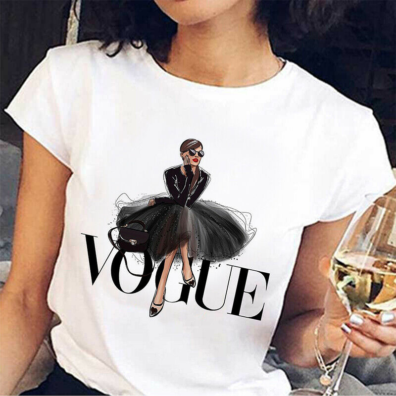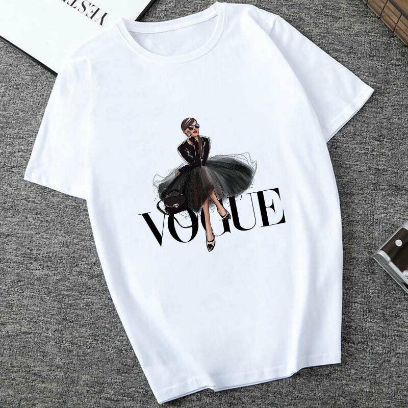 Καλοκαιρινό λευκό t-shirt με την επωνυμία Vogue. Κατασκευασμένο από ελληνική βιοτεχνία διαθέσιμο και ετοιμοπαράδοτο σε όλα τα νούμερα. Σύνθεση: 98% cotton 2% elastan.