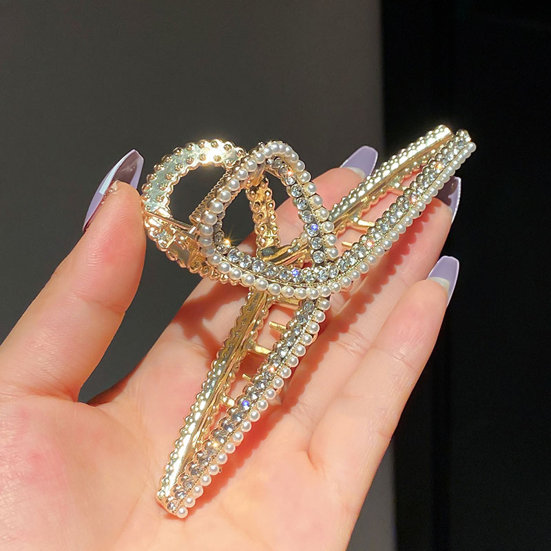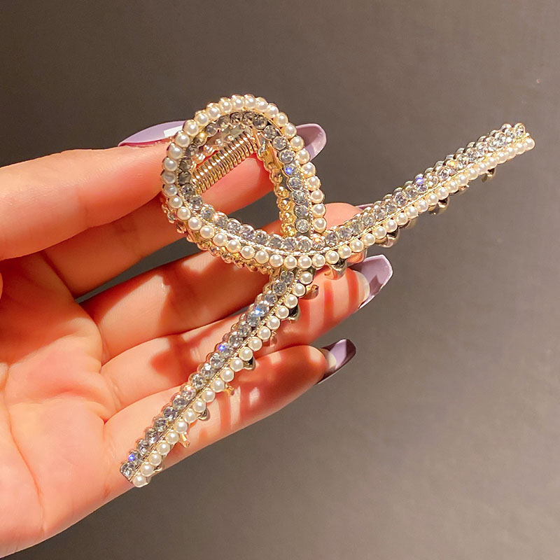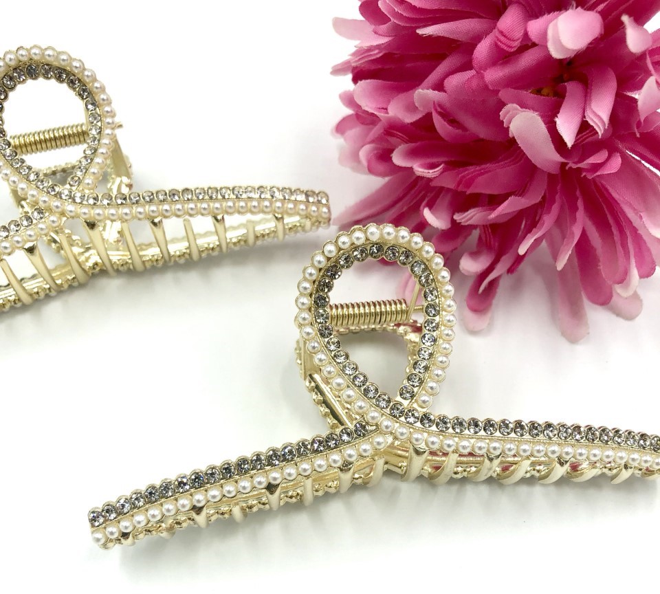 Μεταλλικό κλάμερ για απίστευτη αντοχή μήκους 7 εκατοστών, διακοσμημένο με λευκά κρύσταλλα και λευκές πέρλες!! Ιδανικό και για νυφικό χτένισμα.