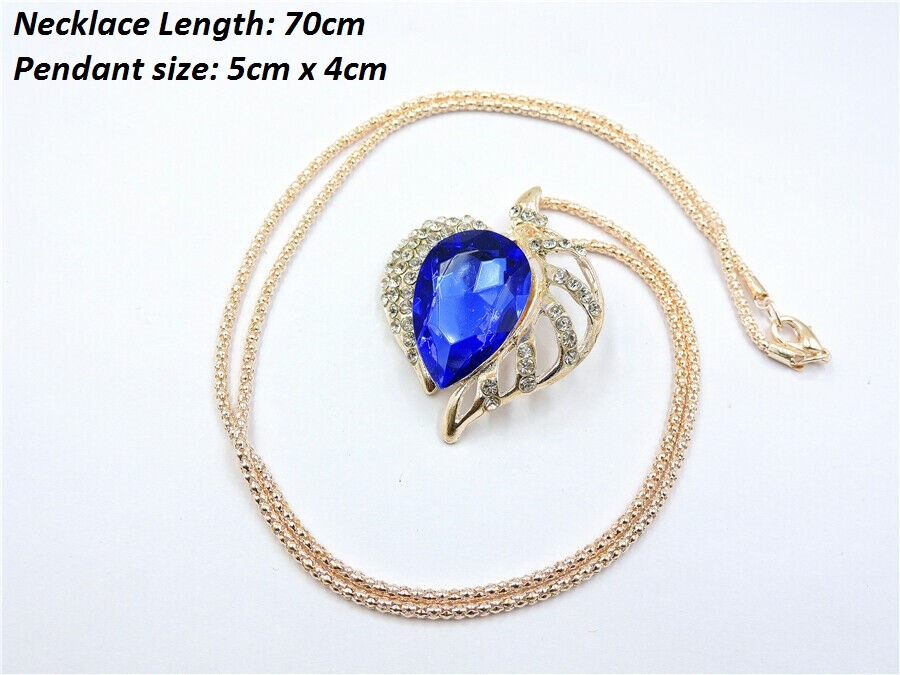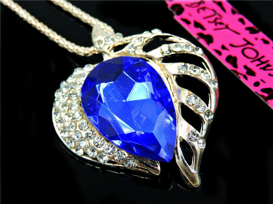 Eντυπωσιακό, μεγάλο μενταγιόν μπλε δάκρυ σχεδιασμένο από την,betsey Johnson, κατασκευασμένο από German Silver. Διακοσμημένο με λαμπερά, λευκά κρύσταλλα σε κοπή round, και ένα μεγάλο μπλε κρύσταλλο στο κέντρο του σε κοπή pear. Το μενταγιόν συνοδεύεται από χοντρή snake αλυσίδα που καταλήγει σε καρδιά με το λογότυπο της σχεδιάστριας. Μήκος αλυσίδας 70 εκατοστών και διαστάσεις μοτίφ 5 χ 4 εκατοστά.