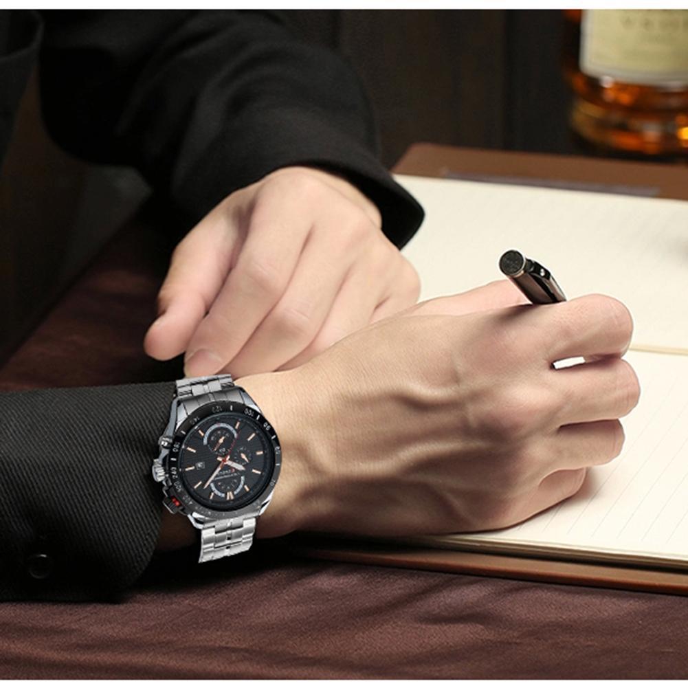 Ανδρικό ρολόι CURREN με νεανικό design, κατασκευασμένο από ανοξείδωτο ατσάλι με μαύρο καντράν και διάμετρο καντράν 5 cm, αναλογικό, με ημερομηνία, αποστέλλεται στην original συσκευασία του!