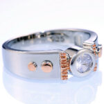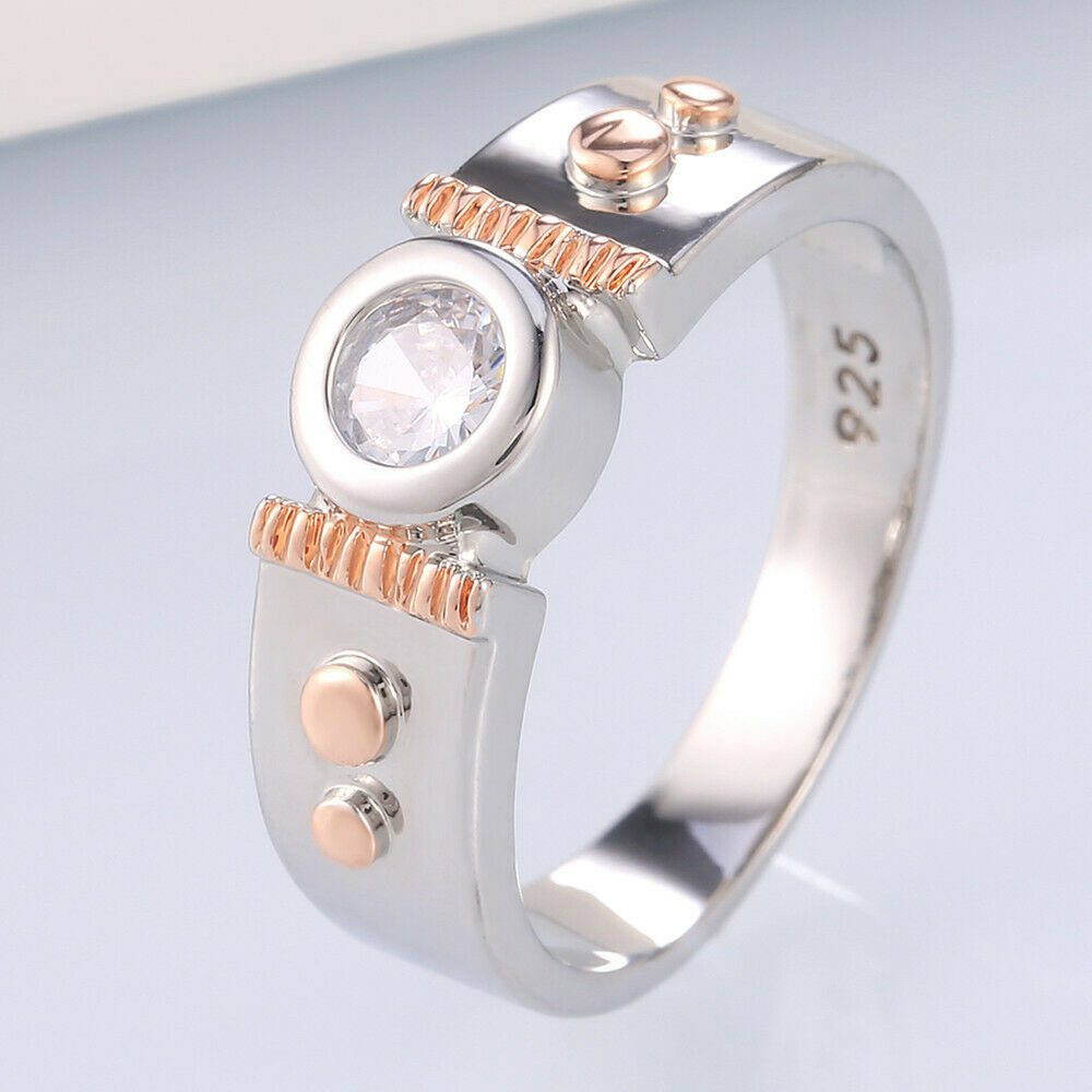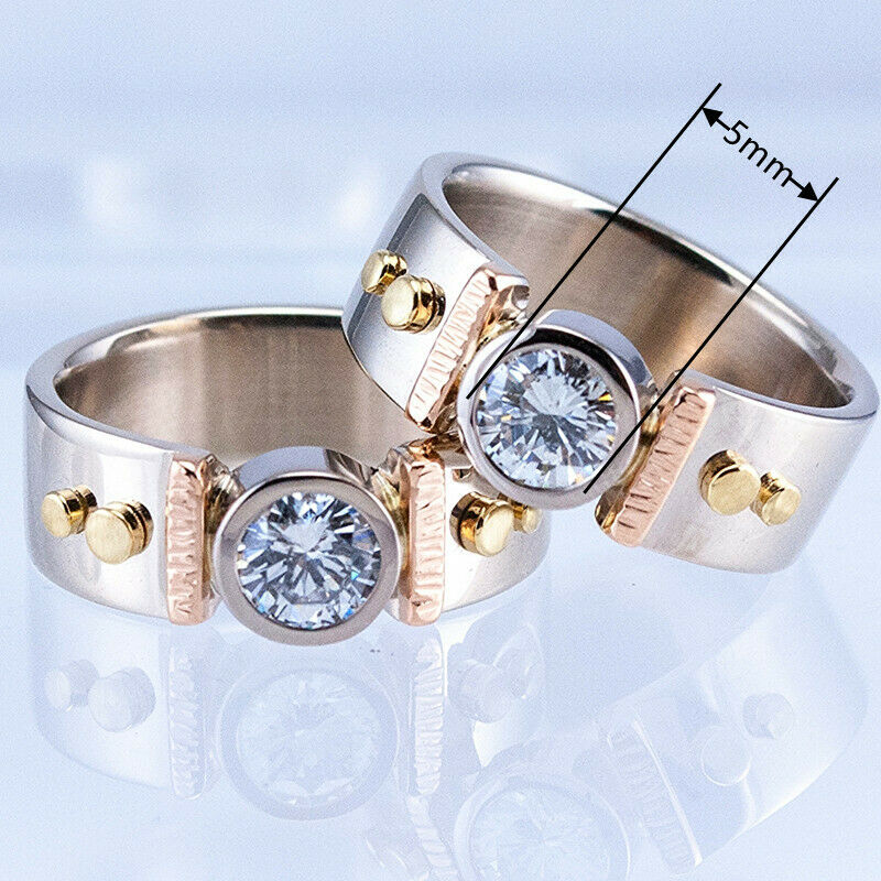 Μονόπετρο δαχτυλίδι από τη σειρά Two Tone σε μοντέρνο σχέδιο, με εντυπωσιακό λευκό στρογγυλό ζιργκόν Brilliant, ισοδύναμο με διαμάντι 2 καρατίων. Η διάμετρός του είναι 5 mm και στηρίζεται σε γάμπα σε λευκό χρυσό 18 καρατίων (18Κ) επιμετάλλωση.Δύο τόνους χρυσού ροζ και κίτρινο. Συλλογή Mister Outlet