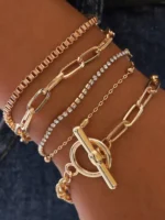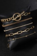 Νεανικό, κομψά ΣΕΤ πολυτελείας για εξαιρετικές εμφανίσεις, αποτελείται από 5 βραχιόλια! Χρυσά πολυτελής με ζιργκόν βραχιόλια κατασκευασμένα από ανοξείδωτο ατσάλι, αυξομειώνονται και εφαρμόζουν ιδανικά σε κάθε καρπό. Διαθέτουν διπλή επιμετάλλωση κίτρινου χρυσού.