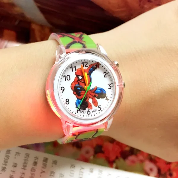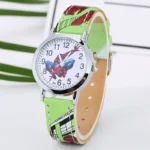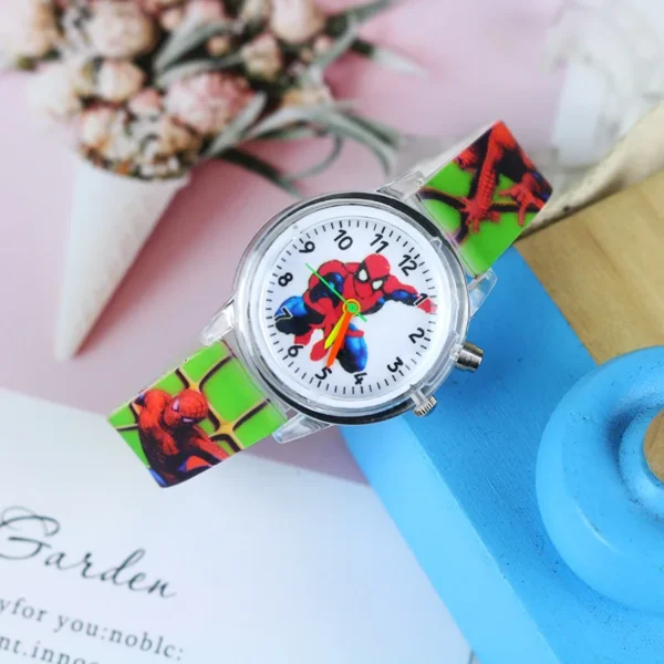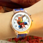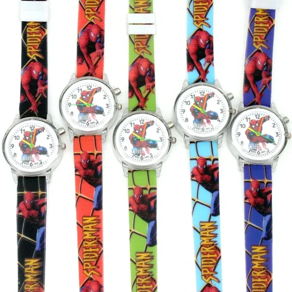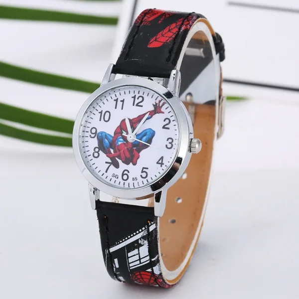 Παιδικό ρολόι, αναλογικό, με τον Spiderman που τόσο γοητεύει τα αγόρια! Η κάσα του είναι από ανοξείδωτο ατσάλι και το λουράκι του από δέρμα! Διάμετρος καντράν 2,8 cm! Αδιάβροχο μόνο για πλύσιμο χεριών!