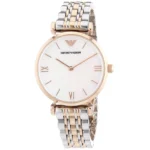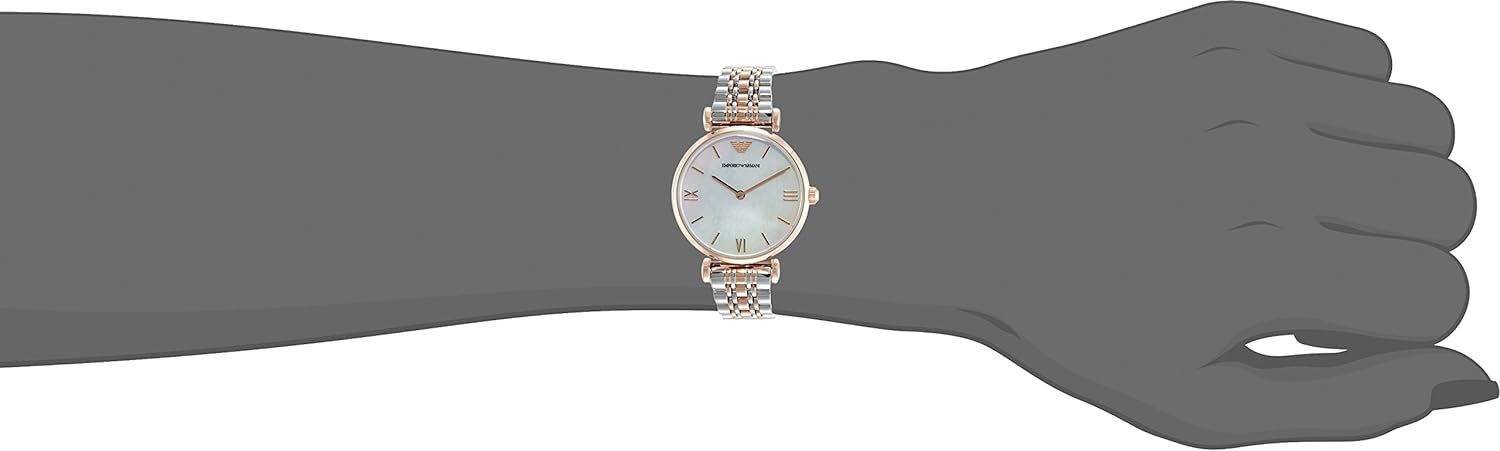 Πανέμορφο γυναικείο αναλογικό ρολόι πολυτελείας EMPORIO ARMANI με το μπρασελέ του σε silver/gold απόχρωση! Η κάσα του από ανοξείδωτο ατσάλι και η διάμετρος της είναι 3,6cm! Λευκό καντράν με silver/gold αποχρώσεις που αναδεικνύουν την ομορφιά του!