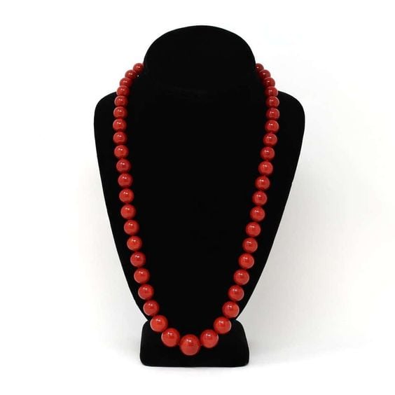 Πανέμορφο κολιέ 10mm, διακοσμημένο με κατακόκκινα 100% φυσικά round κοράλλια, δεμένα σε διπλό μεταξωτό νήμα. Το κολιέ έχει μήκος 47cm.