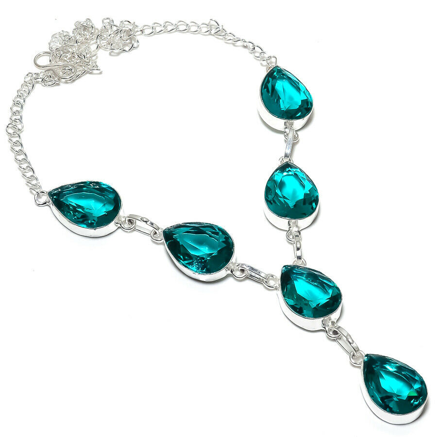 Ένα καταπληκτικό κολιέ, χειροποίητο, ινδικό. Κατασκευασμένο από ασήμι 925, μήκους 45 εκατοστών. Διακοσμημένο με πράσινες τουρμαλίνες σε κοπή pearl. Total Carat Weight (TCW): 120 CTS!