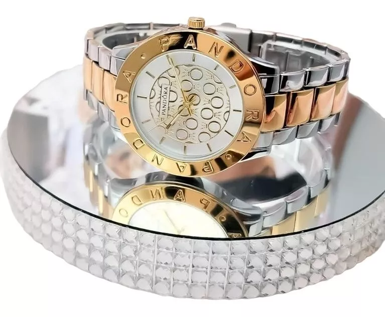Γυναικείο ρολόι πολυτελείας PANDORA, αναλογικό, πολύ μοντέρνο, σε silver-rose/gold χρώμα με δίχρωμο μπρασελέ και καντράν!! Με μπρασελέ και καντράν από ανοξείδωτο ατσάλι υψηλής αντοχής και ποιότητας για καθημερινή χρήση και με ενισχυμένο, ορυκτό, αντιθαμβωτικό τζάμι στο καντράν του! Αντιαλλεργικό, σύμφωνα με τις απαιτήσεις της Ευρωπαϊκής Ένωσης!