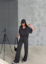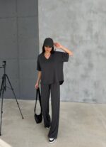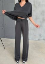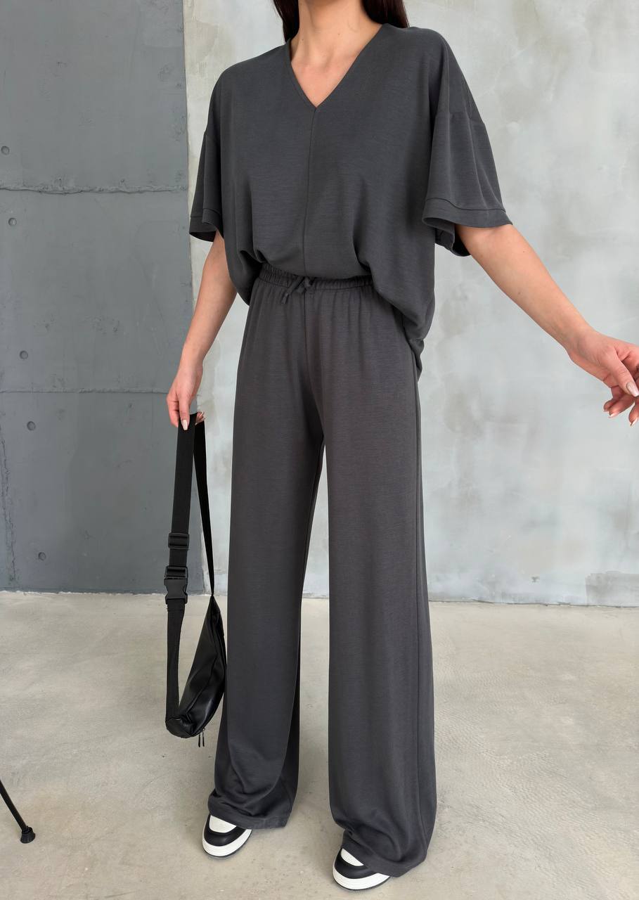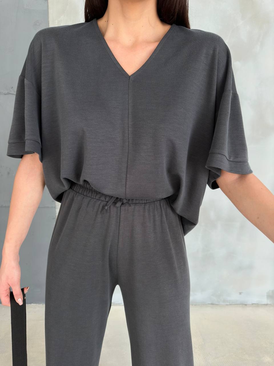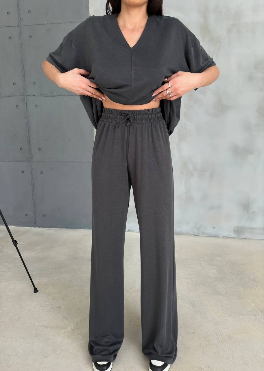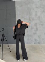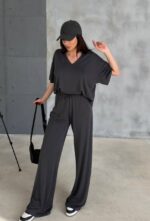 Το σετ φόρμες που σας προτείνουμε είναι ιδανικό για εσάς που διατηρείτε ένα girly look. Χαλαρή εφαρμογή που προσφέρει άνεση και ευκολία κινήσεων. Μπλούζα με κοντό μανίκι και V λαιμόκοψη. Μακρύ φαρδύ παντελόνι με ψηλή μέση. Tο σετ είναι κατασκευασμένο από άριστης ποιότητας βαμβάκι, σε λεπτή καλοκαιρινή ύφανση. Δεν αποχρωματίζεται, δεν μπαίνει στο νερό, αντοχή στο χρόνο.  ‘Made in Greece by Modaworld”