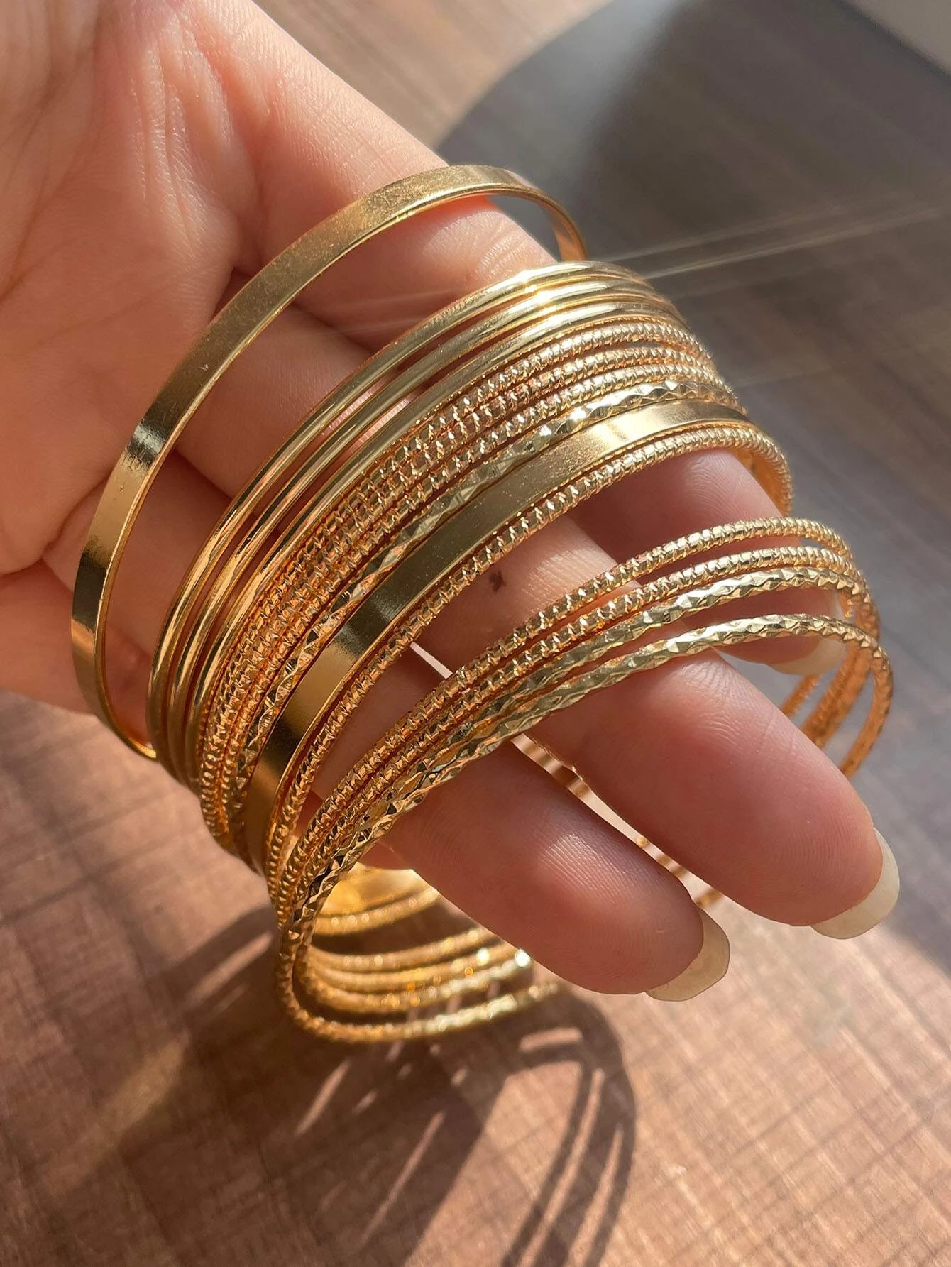 Το must-have του καλοκαιριού!! Γυναικείο σετ από 14 βραχιόλια. Κατασκευασμένα από ανοξείδωτο ατσάλι με επιμετάλλωση κίτρινο χρυσού. BOHO στυλ, αποτελούμενο από 14 βραχιόλια.
