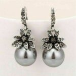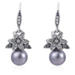 Γυναικεία σκουλαρίκια κατασκευασμένα από German Silver, διακοσμημένα με πέρλα 10mm σε γκρι χρώμα και με λευκά ζιργκόν σε κοπή round. Μήκος σκουλαρικιών 3,8cm.