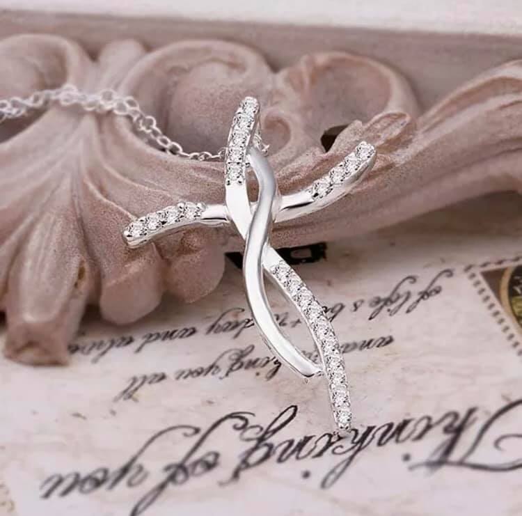 Υπέροχος γυναικείος σταυρός κατασκευασμένος από german silver σε πρωτότυπη πλέξη διακοσμημένος με λευκά ζιργκόν σε κοπή round συνοδεύεται από την αλυσίδα του μήκους 45 50 cm!!