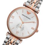Πανέμορφο γυναικείο αναλογικό ρολόι πολυτελείας EMPORIO ARMANI με το μπρασελέ του σε silver & gold απόχρωση! Το καντράν του είναι gold περιμετρικά και silver εσωτερικά με χρυσές τις λεπτομέρειες και το λογότυπο. Εξαιρετικής ποιότητας και εμφάνισης.