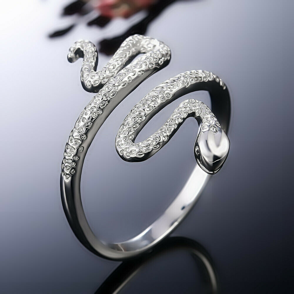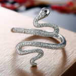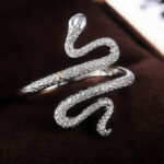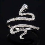 Υπέροχο δαχτυλίδι φίδι με λευκές πέτρες ζιργκόν.