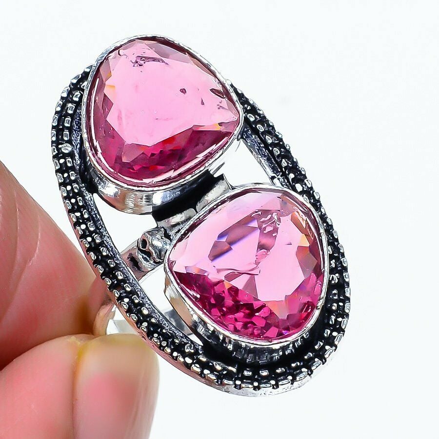 Υπέροχο χειροποίητο δαχτυλίδι, ασημένιο 925, διακοσμημένο με πέτρα ροζ Κουνζίτης (lab creation), εξαιρετικής καθαρότητας και λάμψης, σε κοπή round.