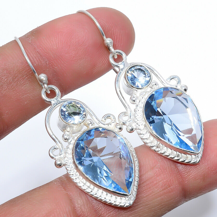 Πανέμορφα, χειροποίητα κρεμαστά σκουλαρίκια, κατασκευασμένα από ασήμι 925, διακοσμημένα με λαμπερo τανζανίτη (Tanzanite) σε κοπή pear & round. (Lab creation). Τα σκουλαρίκια έχουν μήκος 5 εκατοστά.
