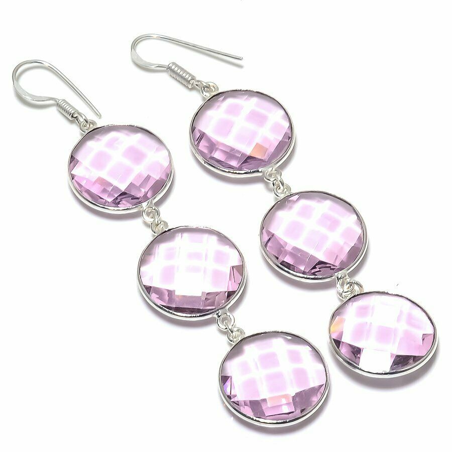 Χειροποίητα σκουλαρίκια κατασκευασμένα από ασήμι 925 και διακοσμημένα με ροζ Αμέθυστους σε κοπή round.Σε αυτό το μοναδικό ροζ.Total Carat Weight (TCW): 28.Τα σκουλαρίκια έχουν μήκος 7,12 εκατοστά.