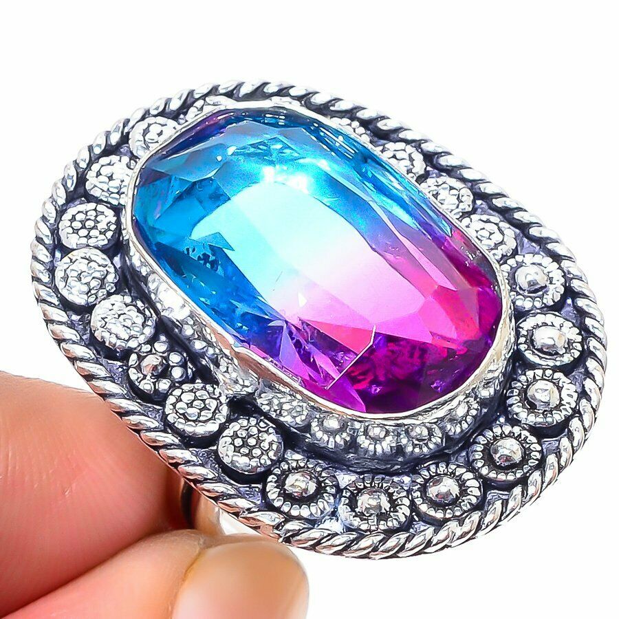 Χειροποίητο δαχτυλίδι , ένα μικρό αριστούργημα! Kατασκευασμένο από ασήμι 925, διακοσμημένο με 100% ορυκτή πολύτιμη πολύχρωμης τουρμαλίνης (Multi Color Tourmaline), εξαιρετικής καθαρότητας και λάμψης, σε κοπή emerald. Ένα μεγάλο δαχτυλίδι με διαστάσεις 3,5 Χ 3 εκατοστά!