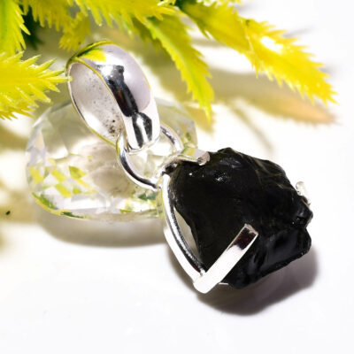 Χειροποίητο ινδικό μενταγιόν με ορυκτή, ακατέργαστη πέτρα, μαύρης τουρμαλίνης