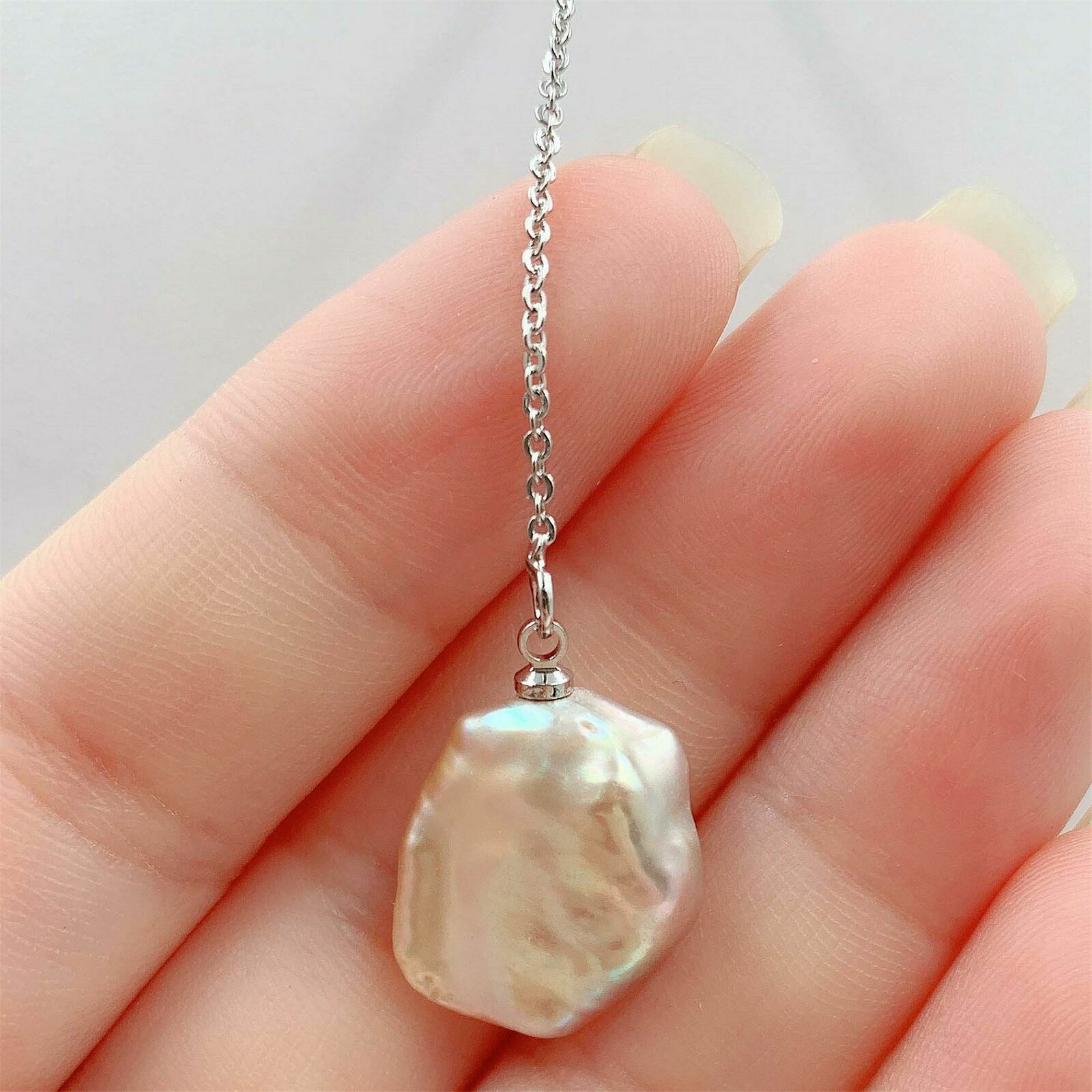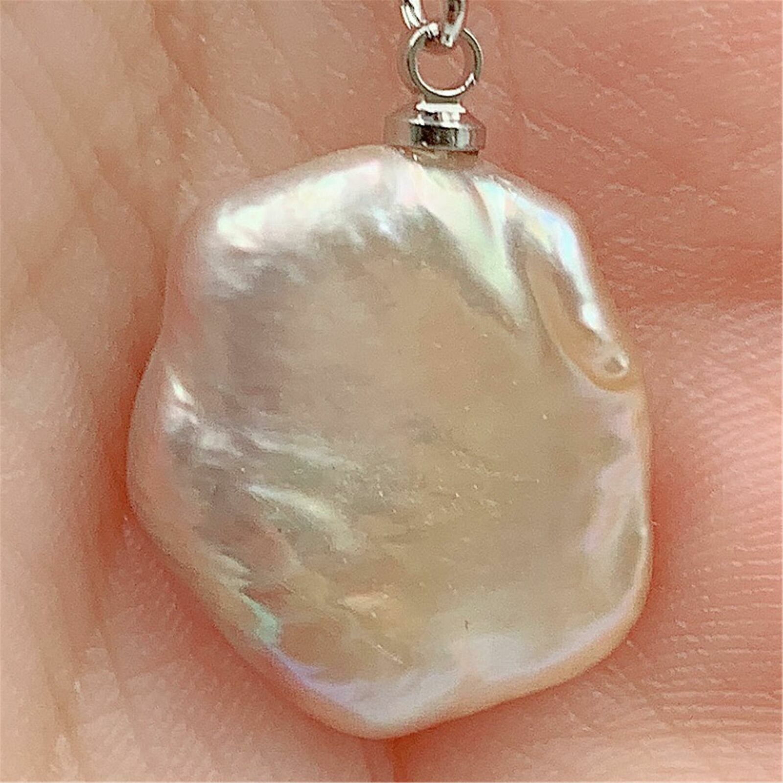 Πανέμορφο 100% φυσικό baroque μαργαριτάρι 21 Χ 16 mm γλυκού νερού, δεμένο με ασημένια αλυσίδα 925, μήκους 45 εκατοστών.