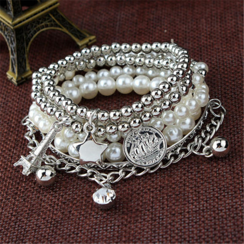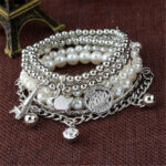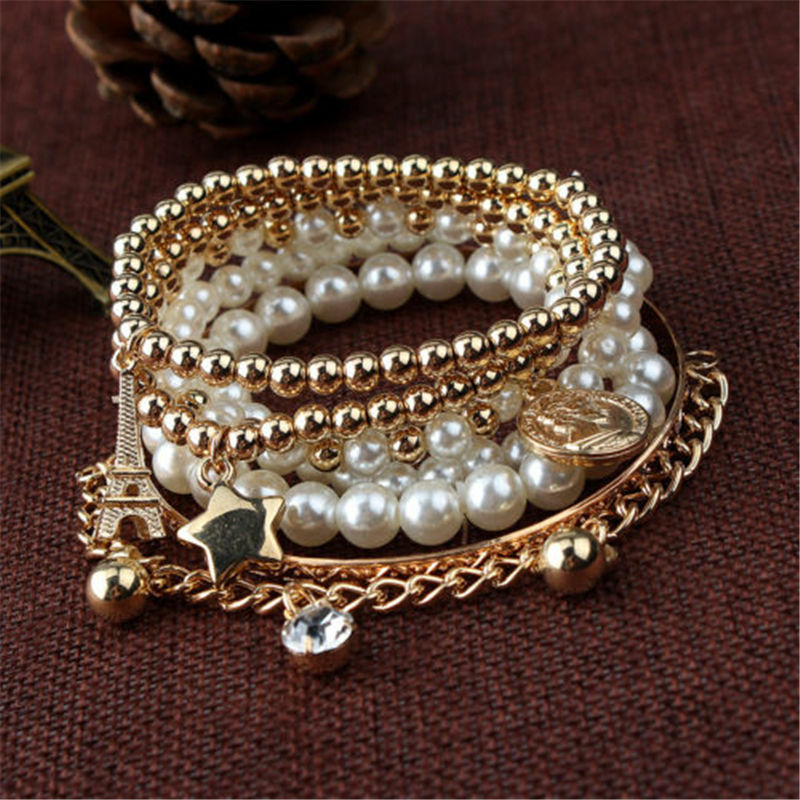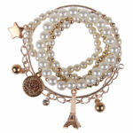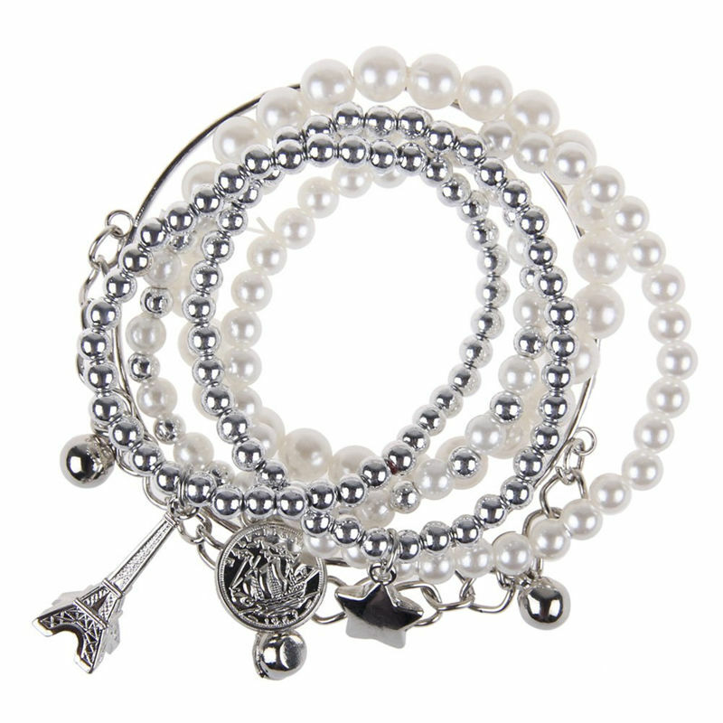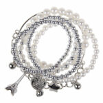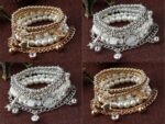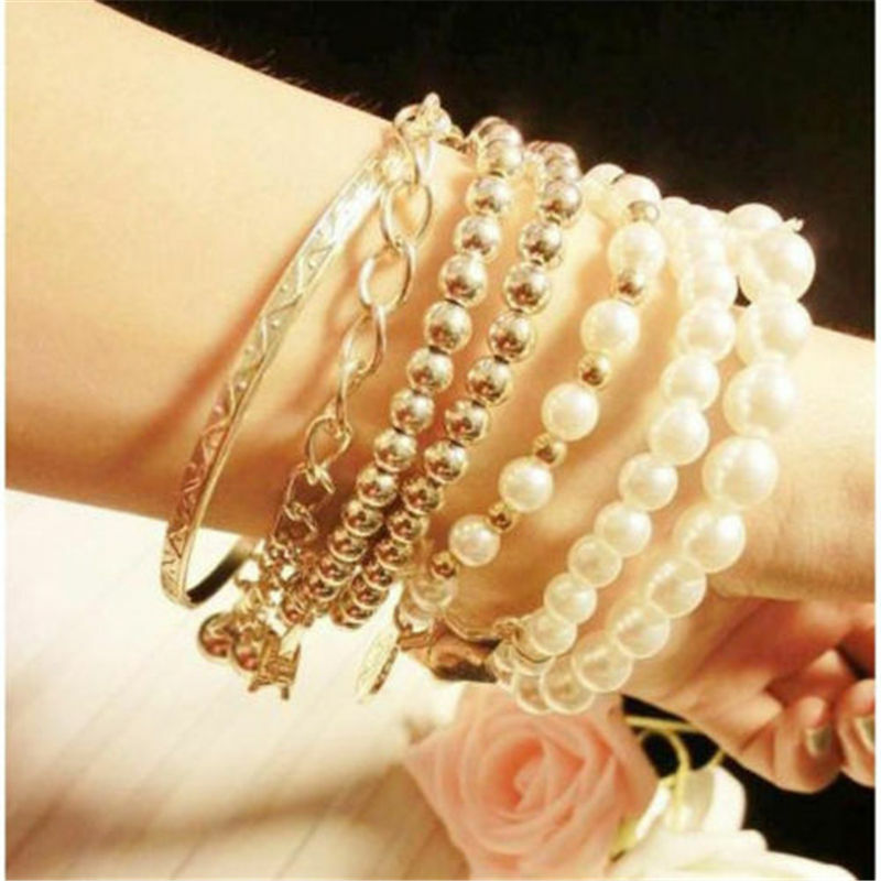 Το σετ αποτελείται από 6 βραχιόλια διακοσμημένα με πέρλες, σχεδιασμένα έτσι ώστε να προσαρμόζονται σε όλους τους καρπούς σε δύο αποχρώσεις gold και silver για να επιλέξετε αυτή που σας αρέσει καλύτερα.