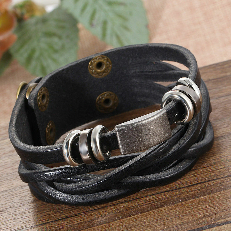 Ανδρικό μαύρο βραχιόλι κατασκευασμένο από δέρμα αγελάδας, με