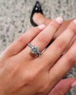 Μονόπετρο γυναικείο δαχτυλίδι, ένα μικρό αριστούργημα! Επάργυρο 925, διακοσμημένο με λευκό ζαφείρι (Lab creation) σε κοπή μπριγιάν 9mm και μικρότερα λευκά ζαφείρια (Lab creation) περιμετρικά της γάμπας σε κοπή round. Βάρος Πετρών :0.62ct –0,49 ct 5,7grams.
