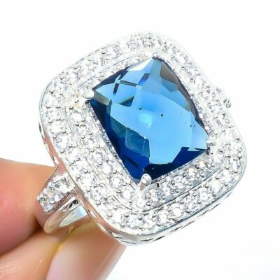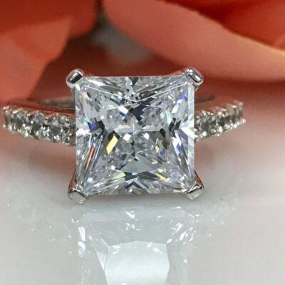 Μονόπετρο γυναικείο δαχτυλίδι, ένα μικρό αριστούργημα! Επάργυρο 925, διακοσμημένο με λευκό ζαφείρι (Lab creation) σε κοπή μπριγιάν και μικρότερα λευκά ζαφείρια (Lab creation) περιμετρικά της γάμπας σε κοπή round. Βάρος Πετρών :0.59ct –0,49 ct 5,7grams.