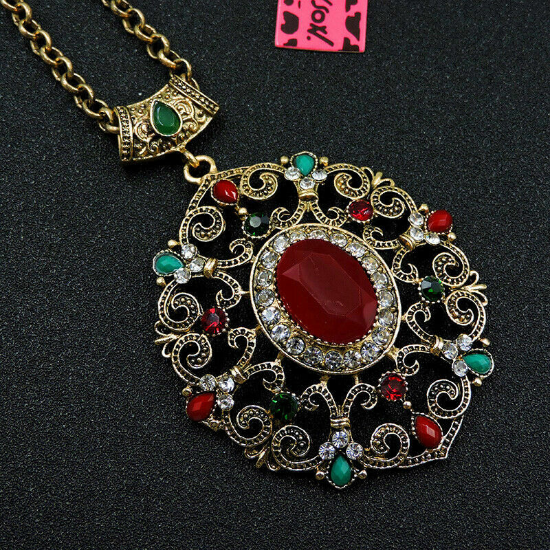 Πολύ ιδιαίτερο κόσμημα της Βetsey Johnson, κατασκευασμένο από χαλκό με αντικέ επεξεργασία, μεγάλο μοτίφ 8×5 εκατοστά. Το υπέροχο κρύσταλλο στο κόκκινο της φωτιάς είναι σε κοπή oval. Χαρίστε αέρα κομψότητας στην εμφάνισή σας.