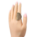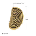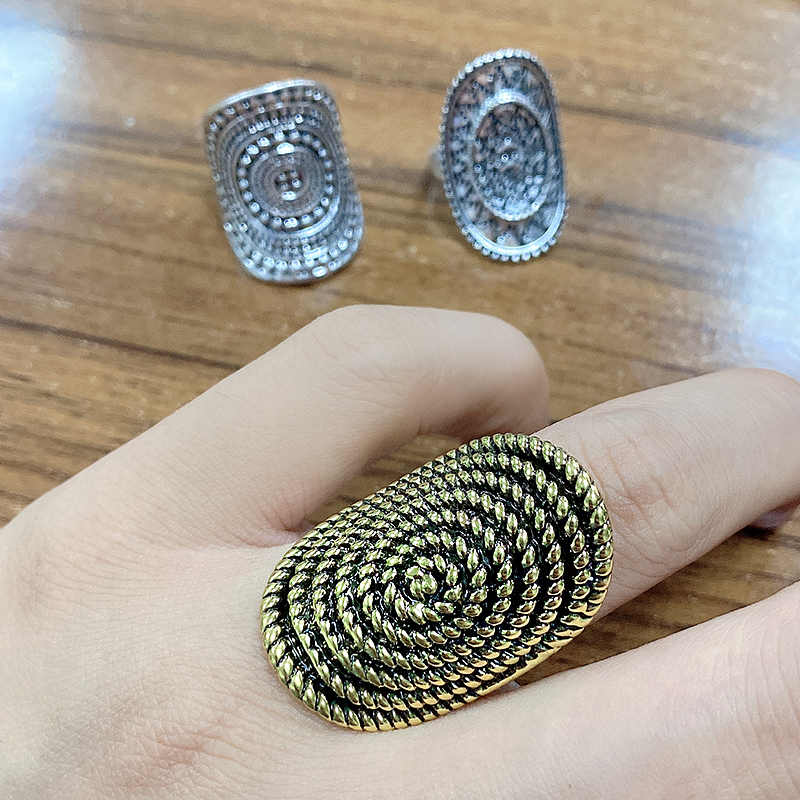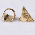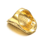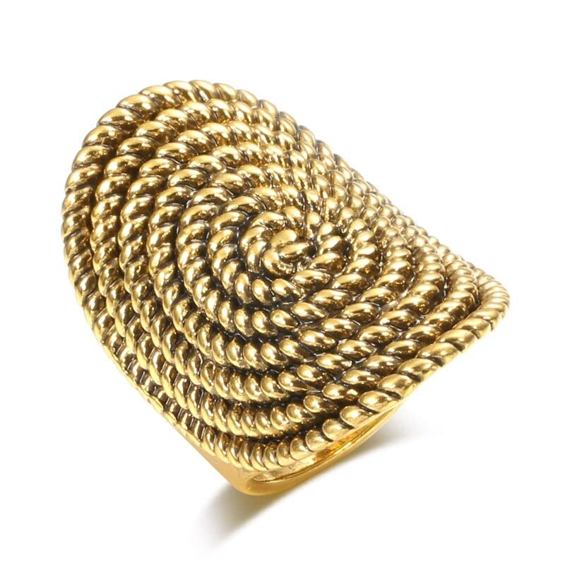 Γυναικείο, μεγάλο, πλατύ, σφυρήλατο ατσάλινο δαχτυλίδι απο ανοξείδωτο ατσάλι. Φορέστε το μόνο του ή μαζί με άλλα δαχτυλίδια. Η τελευταία τάση της μόδας στα δαχτυλίδια, καθώς φοριέται άνετα κάθε ώρα και για κάθε περίσταση. Το δαχτυλίδι διαθέτει επιμετάλλωση κίτρινου χρυσού και επεξεργασία αντικέ.