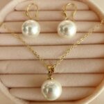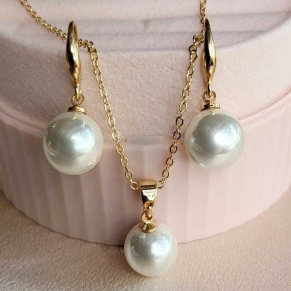 Το ΣΕΤ αποτελείται από: Ένα υπέροχο ζευγάρι σκουλαρίκια με λευκά, μεγάλα μαργαριτάρια QTV Akoya Pearl, άριστης ποιότητας σε σχήμα Round (στρογγυλά), διαμέτρου 14 χιλιοστών. Διαθέτει ασημένια βάση με επιμετάλλωση κίτρινου χρυσού 18 καράτια. Τα μαργαριτάρια διαμέτρου άνω των 10 χιλιοστών είναι το μέγεθος που εντυπωσιάζει, δίνοντας την απόλυτη πολυτέλεια και αίγλη σε κάθε γυναίκα που τα φοράει. Τα μαργαριταρένια σκουλαρίκια είναι τα μοναδικά διαχρονικά κοσμήματα που υπάρχουν από την αρχαιότητα έως και σήμερα.