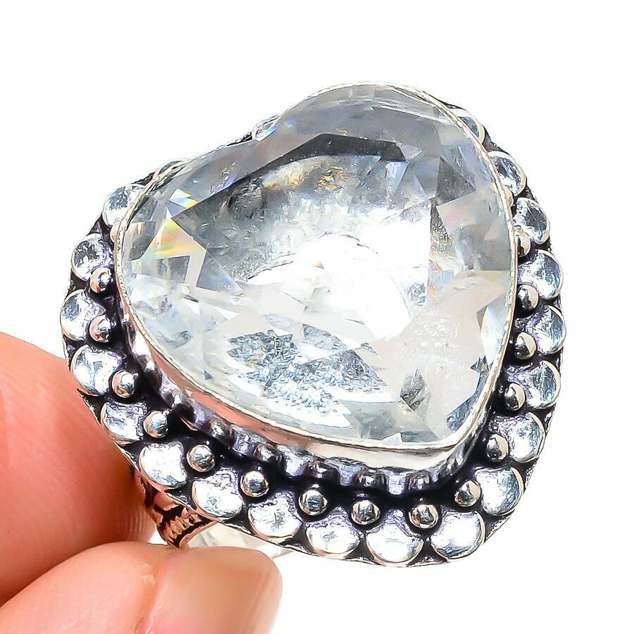 Δαχτυλίδι, ινδικό χειροποίητο κατασκευασμένο από μασίφ ασήμι 925. Διακοσμημένο με ένα υπέροχο, μεγάλο λευκό τοπάζι σε κοπή heart!
